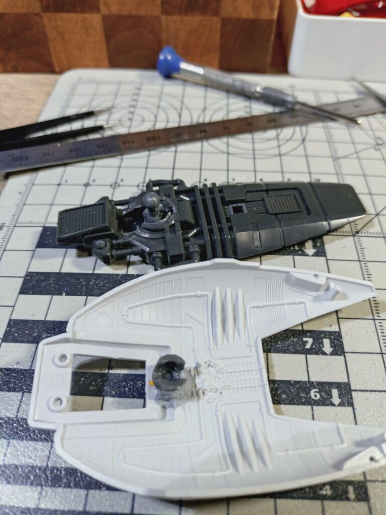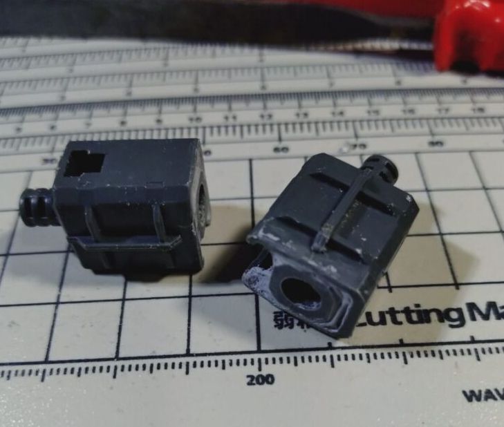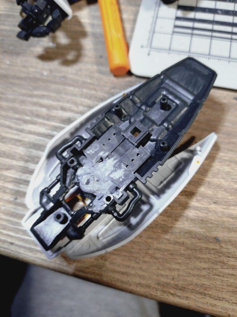 このジョイントパーツを埋め込むために、パーツをくり抜いてパテでモリモリにして固定
